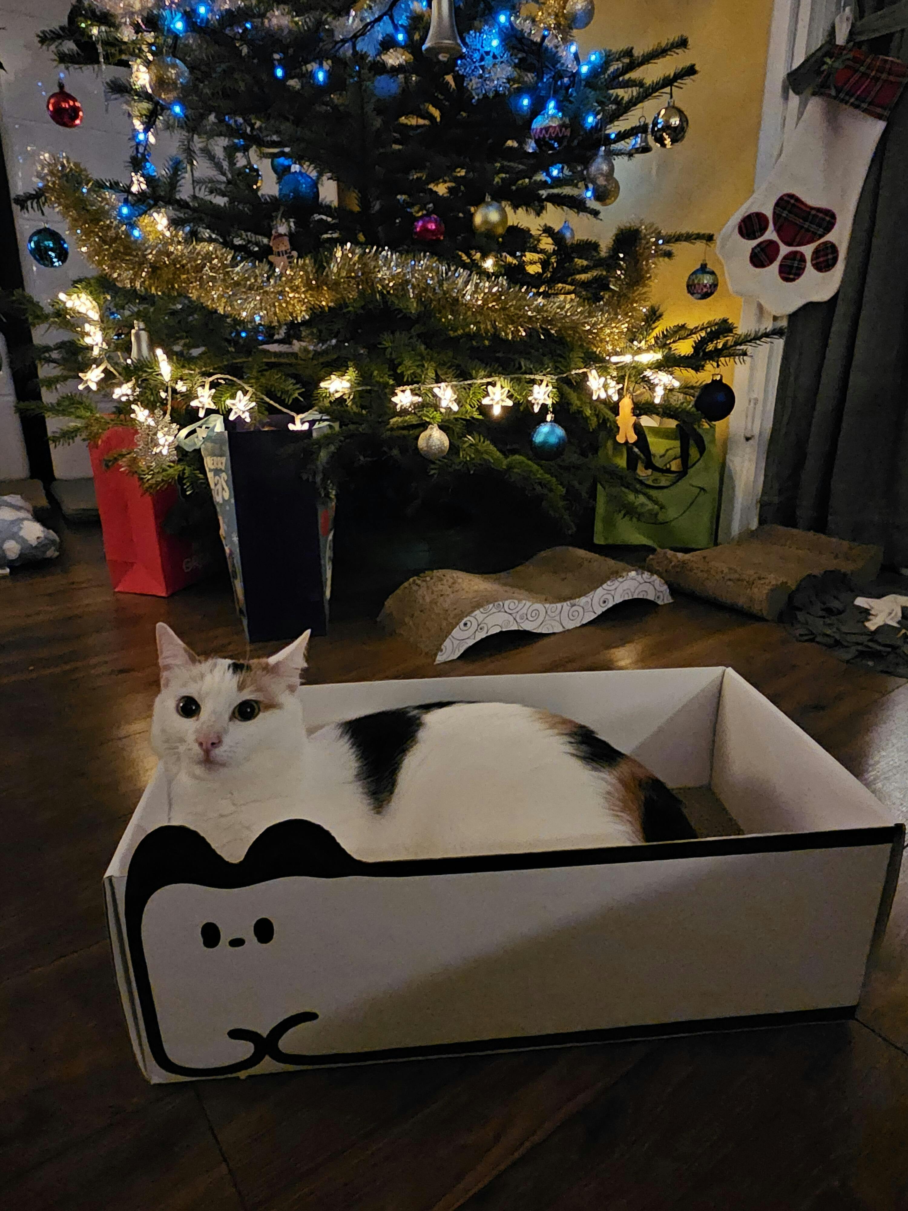 Pudełko kartonowe z tekturową wkładką do drapania słodki kotek