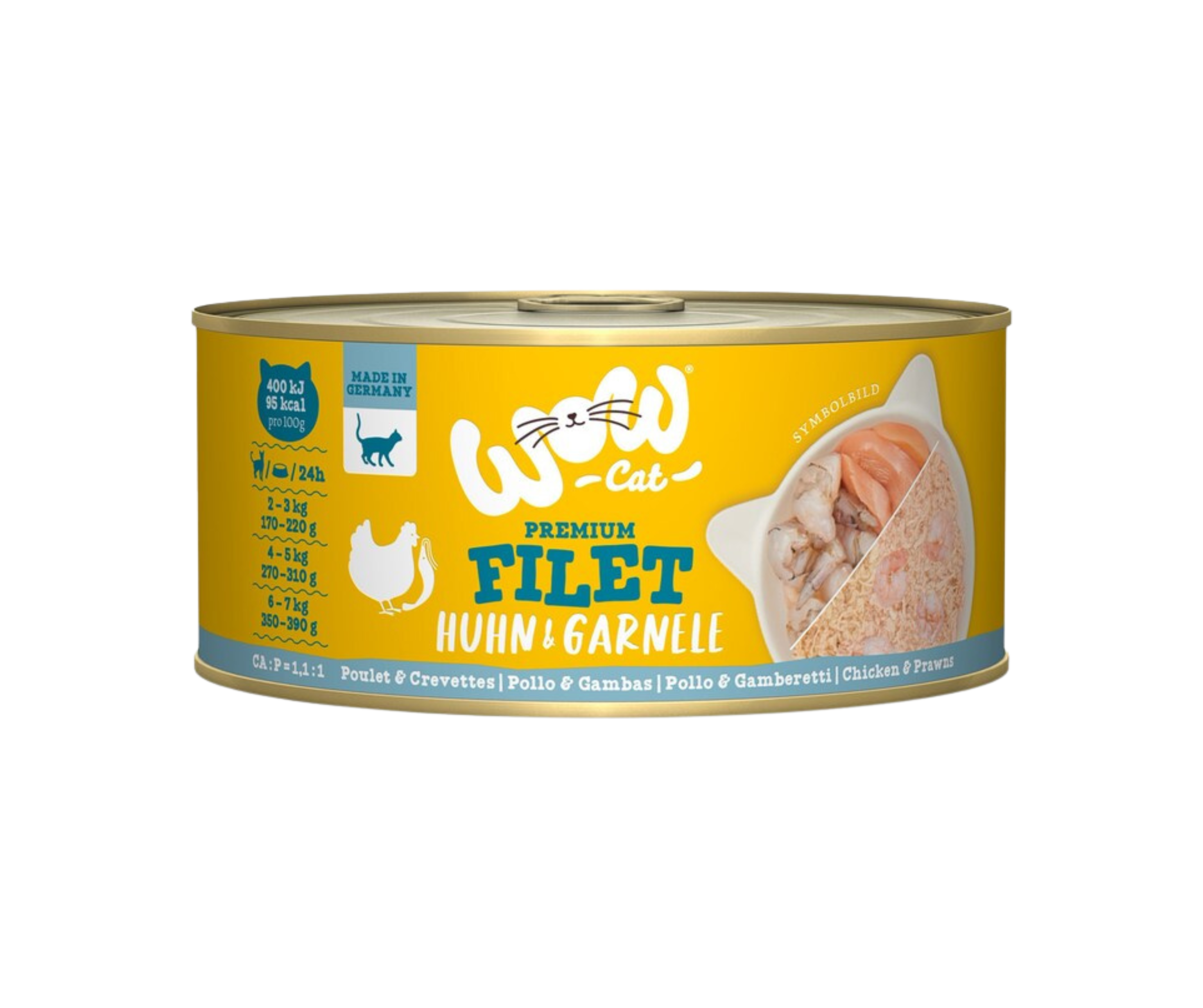 Pełnoporcjowa karma filetowa dla kota WOW CAT - filety kurczaka z krewetkami.